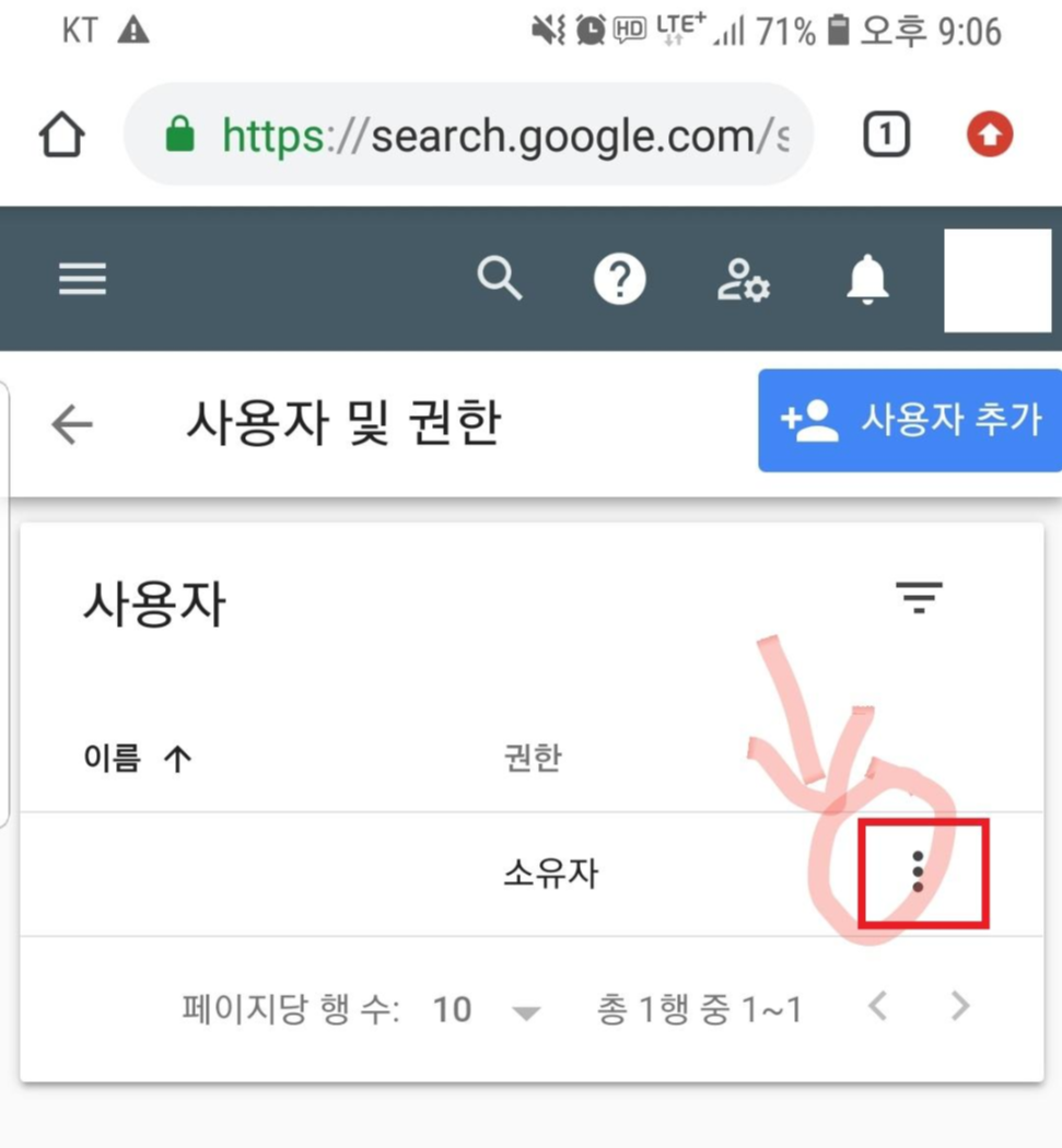 권한 밑에 '소유자'라고 되어 있는 곳 오른쪽에 점 3개가 세로로 나와있는 버튼이 있습니다.