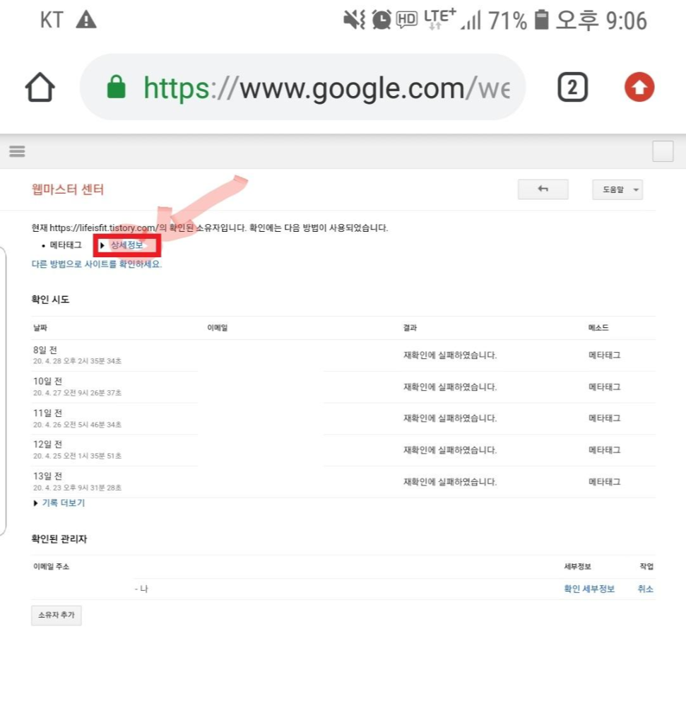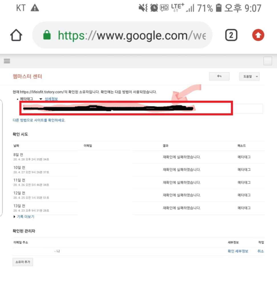 (구글웹마스터도구)구글서치콘솔 메타태그 날라갔을때, 확인하는 쉬운 방법 2단계