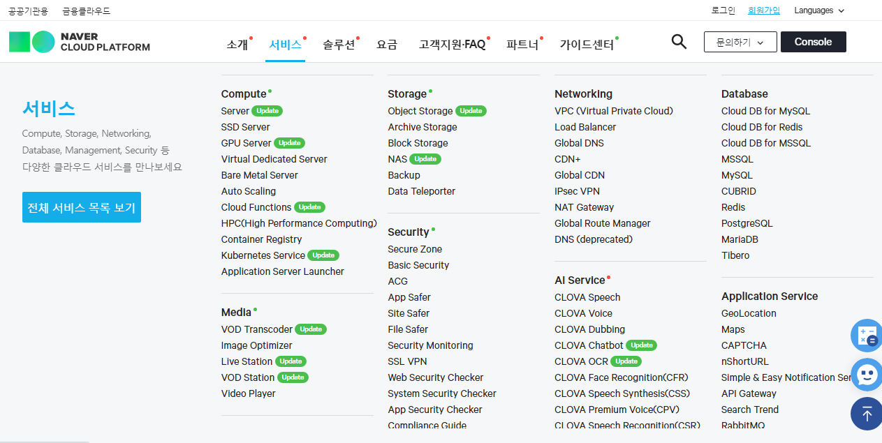네이버클라우드 소개 /출처 네이버클라우드플랫폼 네이버는 네이버클라우드 를 운영하면서 아마존의 AWS(아마존 웹서비스)와 같은 형태의 클라우드 서비스 제공자로도 활약하고 잇습니다.