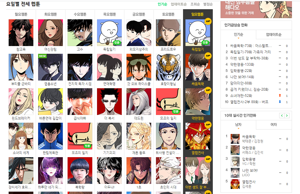 네이버웹툰 /출처 네이버웹툰 네 번재 사업부문은 최근 핫이슈로 떠오른 콘텐츠 사업입니다. 네이버는 이미 네이버웹툰을 보유하고 있으며, 여러 웹툰들의 IP(지적재산권)를 활용해 드라마화 또는 영화화하면서 수익을 도모하고 있습니다.