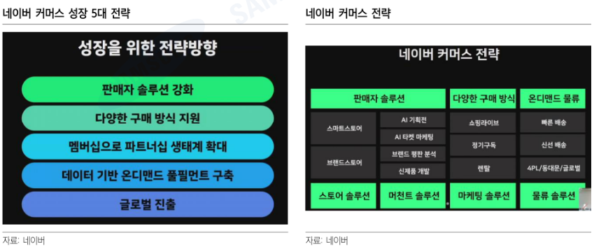네이버 커머스 전략방향 /출처 삼성증권 리포트 2번째 사업부문은 커머스 부문입니다. 이커머스라고 보시면 되며, 네이버쇼핑, 그리고 스마트스토어(옛 스토어팜)가 가장 대표적인 커머스 수익 채널입니다.