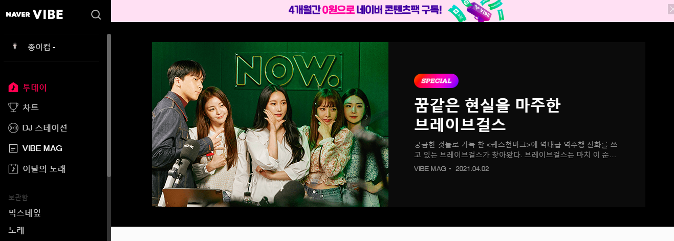 네이버 뮤직 서비스 바이브 /출처 네이버바이브 이외에도 네이버 바이브는 멜론이나 예전 벅스뮤직, 지니뮤직 등과 같은 음원 스트리밍 서비스인데, 큰 두각을 내고 있지는 않지만, 콘텐츠 사업에서 빠질 수 없는 음원 관련 서비스까지 네이버는 운영 중에 있습니다.