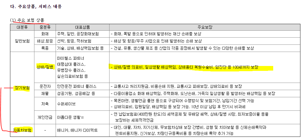 자동차보험의 경우에는 차량 사고 시 보험을 부를 때 처리되는 애니카, 애니카 다이렉트 등으로 구성되어 있으며, 대인/대물 등 우리가 들어본 그런 차량 보험을 말합니다.