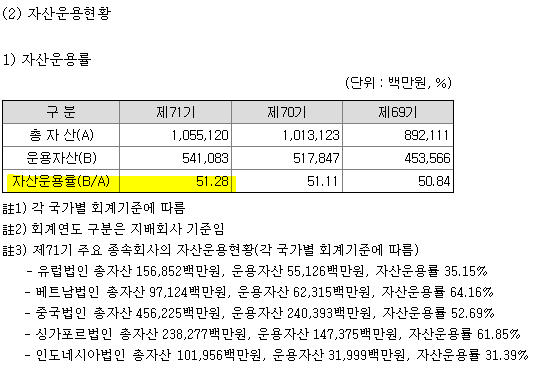 이 정도는 유의미하다기 보다는 그저 투자자 입장에서 한 번쯤 짚고 간다는 느낌으로 보시면 되겠습니다. 마찬가지로 아래에 기타사업 실적 및 운용현황에 대해서도 규모 면에서 상당히 적기 때문에 바쁘신 분들은 넘기고 재무분석 부터 이어보시면 되겠습니다.