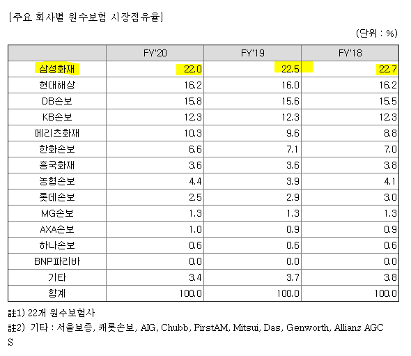 출처 삼성화재 2020년 사업보고서 국내에서는 삼성화재가 시장 점유율 22% 정도로 2위인 현대해상(약 16%),과 DB손보(약 15%)와 상당한 격차를 보이면서 꾸준히 1위 자리를 놓치지 않고 있는 상황입니다.