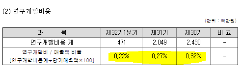 마지막으로, SBS가 매년 꾸준히 연구개발비용을 투입하고 있는지 확인해보겠습니다. 기업이 매년 꾸준한 비율로 매출 중에서 일부를 연구개발에 투자하고 있는지는 기업의 성장 의지와 잠재력을 보여주는 대목입니다.