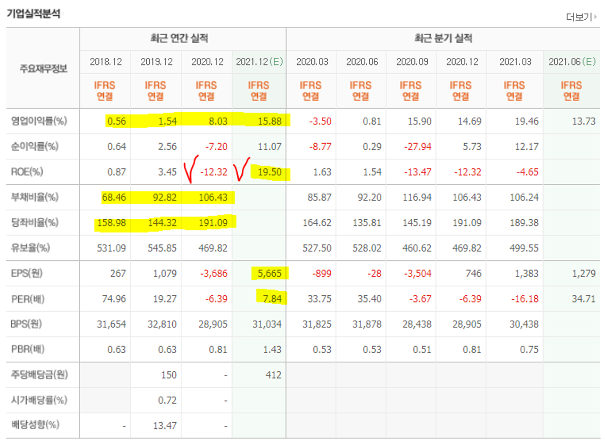 ROE의 경우에는 19.50으로 예상되며, 지난해에 순이익 적자였던 점과 대비되면서 투자자들의 심리를 흔드는 데에 기여했을 거라 보며, 이에 따라 최근처럼 급등하는 모습을 보였습니다.