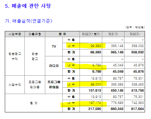 하지만 실제로 매출 구성을 살펴보면 의외로 광고수익보다 프로그램 판매에서 절반 이상의 매출이 발생하고 있다는 걸 확인할 수 있습니다.