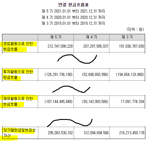 그러나 현금및현금성자산이 약 2,922억 원이나 있는 현금 여력이 충분한 회사이다 보니 별다른 이슈는 없을 것으로 보입니다.