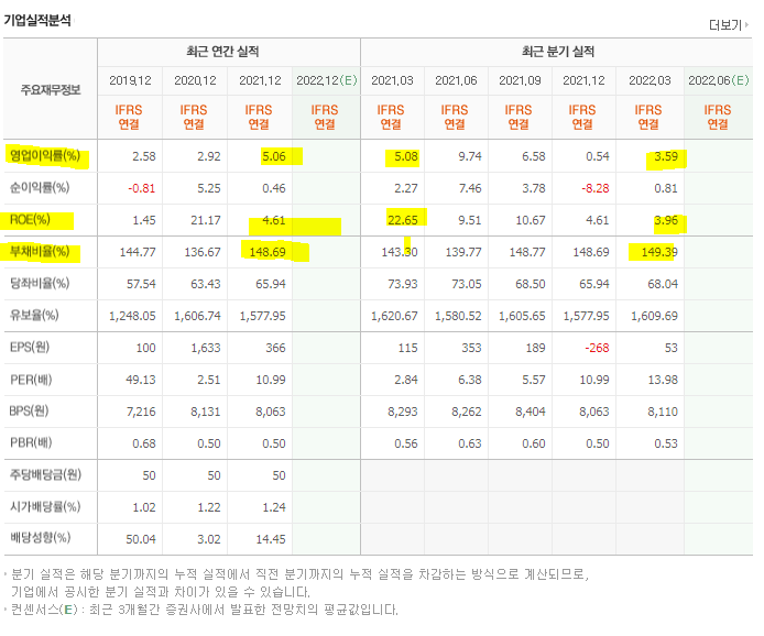 한편, 부채비율의 경우 150% 수준이라 무난한 편입니다.