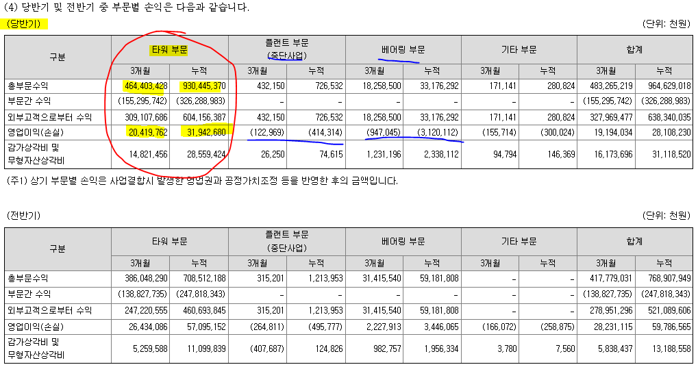 다만, 영업이익 적자를 면치 못하고 있던 플랜트 부문을 중단하면서 수익성은 개선될 것으로 보이며, 잘되는 사업, 즉 타워 부문과 베어링 부문에 집중하는 쪽으로 경영방향을 바꾸는 흐름입니다.