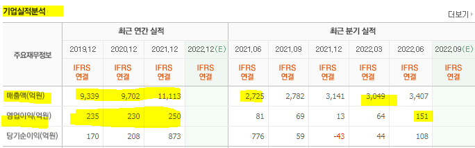 영업이익 또한 이미 2분기 누적으로 약 215억 원 수준인데, 2021년 한 해 영업이익이 250억 원 수준이었음을 고려하면 2022년 영업이익이 대폭 증가할 것으로 보입니다.