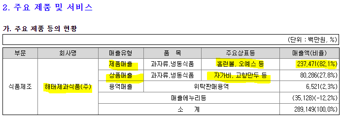 1) 해태제과식품 사업분석(무엇으로 돈을 버는가)
